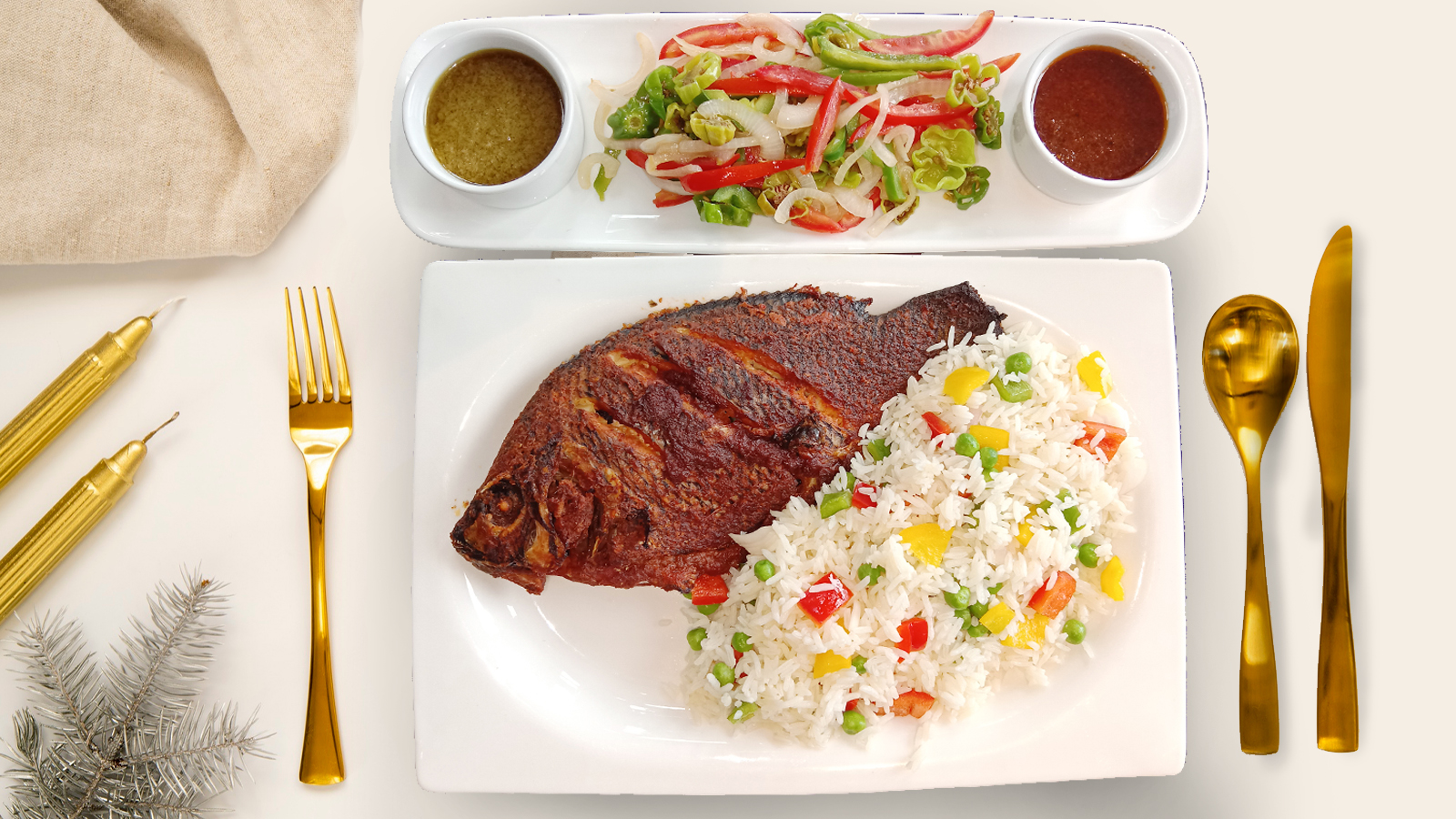 - Grilled Tilapia, Plain Veg-Rice 130 GH