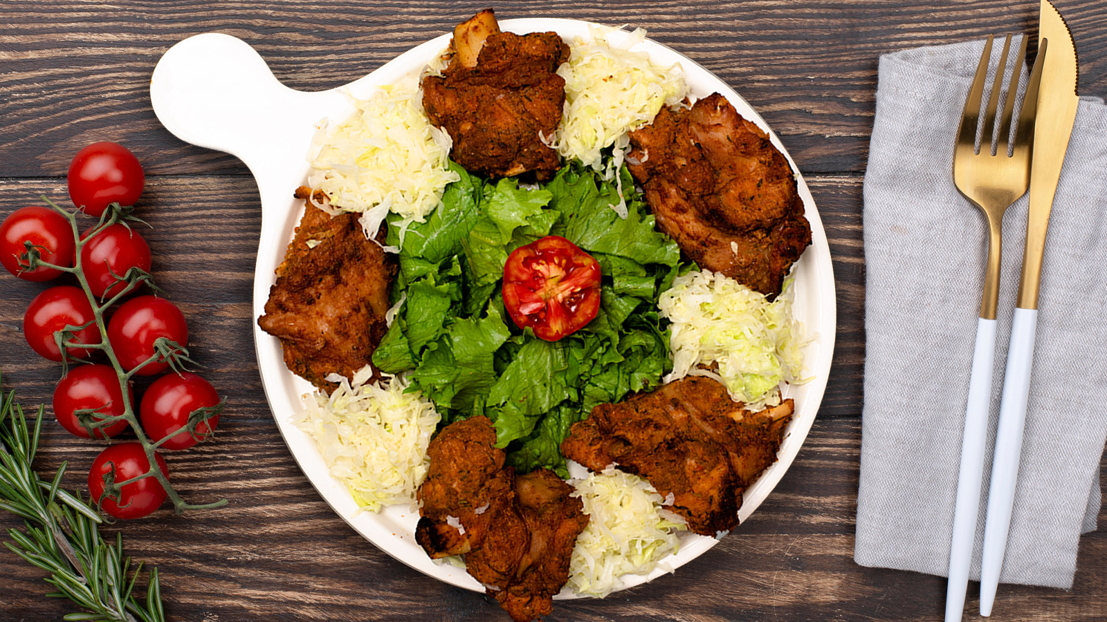 - Chicken Drumsticks (2), Plain Veg-Rice 110 GH